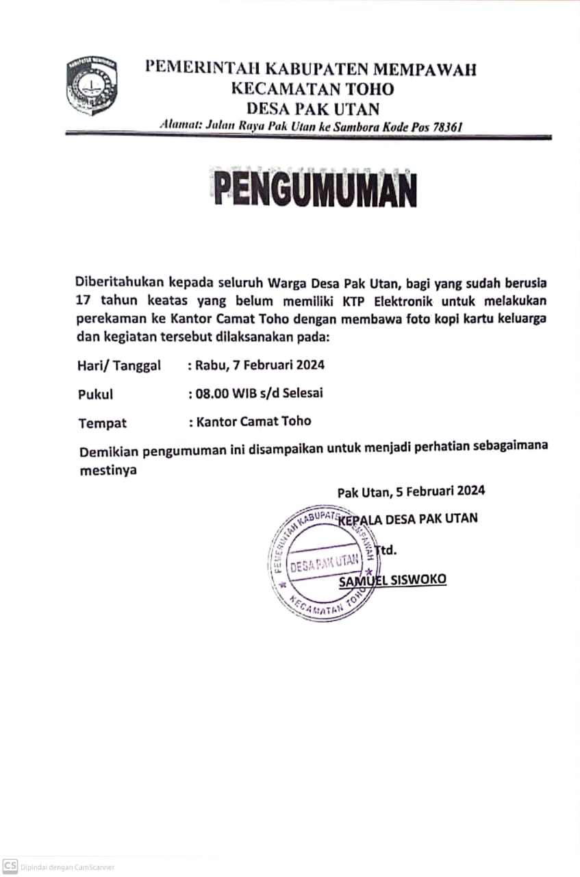 Pelantikan Pengawas Tempat Pemungutan Suara (PTPS) Desa Pak Utan